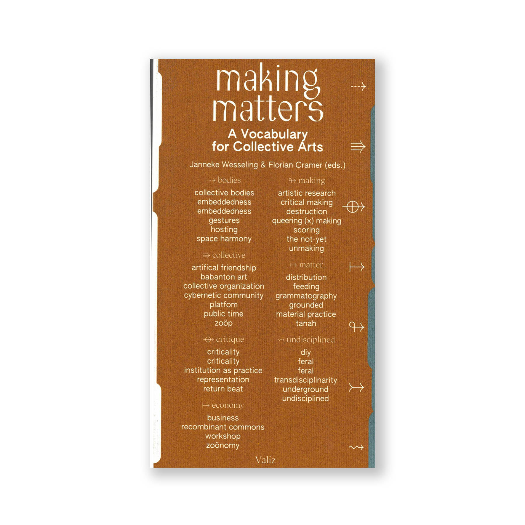 Making Matters looks at art practices across all continents that do not conform to a Western concept of art nor to traditional distinctions between art, design, research and activism—where the boundaries between art, design, research and activism become blurred or are dissolved. The entries in this vocabulary experiment with concepts and keywords of current art practices that may no longer be recognizable as art.