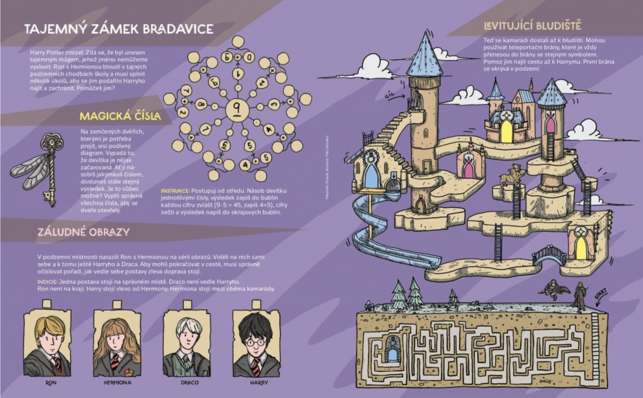 What magical items are there and what are they for? Which illusionists are the most famous and who helps them the most. You will learn to do magic with a pencil and with the help of physical and chemical experiments. You will experience the magic of animation and find out how Doctor Seagull treats the disillusioned Mr. Blažek. What will the search engine at the witch school reveal and who is hiding in the levitating maze at Hogwarts. The cover was drawn by Mára Čmára.
