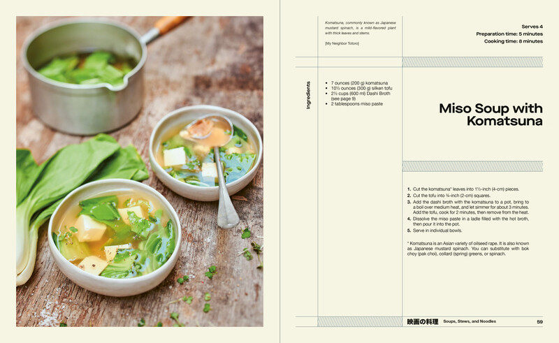 Tan-men soup from Midnight Diner; risotto from Princess Mononoké; ramen from Tampopo—these and other dishes are the stars of this unique cookbook that pairs the best of Japanese cinema with the cuisine featured in it. Organized by type of dish—dumplings; noodles, soups, and stews; seafood; eggs and meat; vegetables and rice; desserts and tea—it offers concise and beautifully illustrated recipes that will satisfy practiced and novice cooks alike. Scattered throughout are descriptions of the films that inspired each dish—a selection as varied as the recipes themselves that includes classics, cult, and anime: Midnight Diner, Toilet, Spirited Away, Little Forest, Makanai, My Neighbor Totoro, What Did You Eat Yesterday?, Our Little Sister, Samurai Gourmet, Voyage to Tokyo, The Asadas, Kamome Diner, The Way of the Hot and Spicy, The Garden of Words, Every Day a Good Day, Sweet Bean, Kantaro. Through this flavorful blend of cinema and gastronomy, Japanese film buffs will find a new way of appreciating their favorite masterpieces, and Japanese foodies will discover movies that whet their appetites.